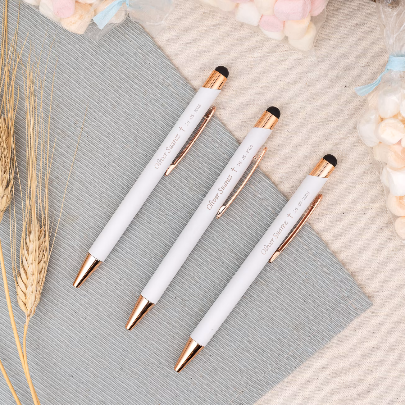 Además de su uso en el ámbito empresarial, este bolígrafo puntero personalizado es una elección muy recurrente para eventos y celebraciones. Es un regalo original y funcional para ocasiones especiales como bodas, bautizos o comuniones. Su personalización permite incluir nombres, fechas o mensajes especiales, convirtiéndolo en un recuerdo inolvidable para los invitados. También es una gran idea en eventos más personales como regalo para el Día del Padre, ofreciendo un detalle práctico y elegante que cualquier padre valorará.
