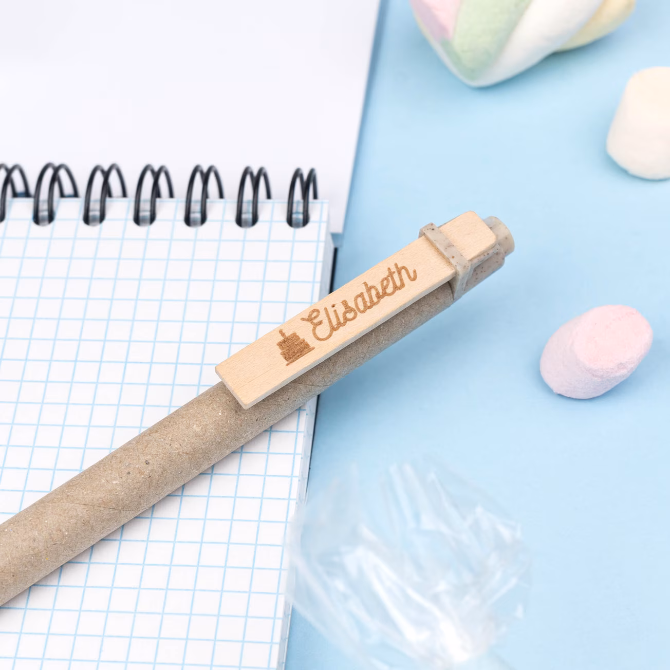 Estos bolígrafos personalizados están fabricados con materiales como corcho, cartón reciclado, caña de trigo, bambú… entre otros. Todos nuestros productos están diseñados para fomentar la utilización y el reciclado de materias primas, reduciendo así las emisiones contaminantes en su fabricación y uso. Además, todos nuestros bolígrafos se pueden personalizar en la parte del clip rectangular, lo que te permitirá crear un producto único y exclusivo que refleje tu personalidad o la imagen de tu empresa, con logo, nombre, un diseño, etc.