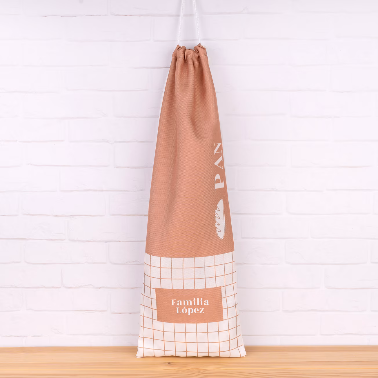 Si te gusta cuidar hasta el último detalle en la decoración de tu hogar, ahora tienes la oportunidad de crear bolsas de tela para guardar el pan, con un diseño propio, o los nombres de todos los miembros de la familia. Con nuestro editor online podrás crear fácilmente el diseño para tu bolsa para pan. Como curiosidad, también se les llama talegas de pan.