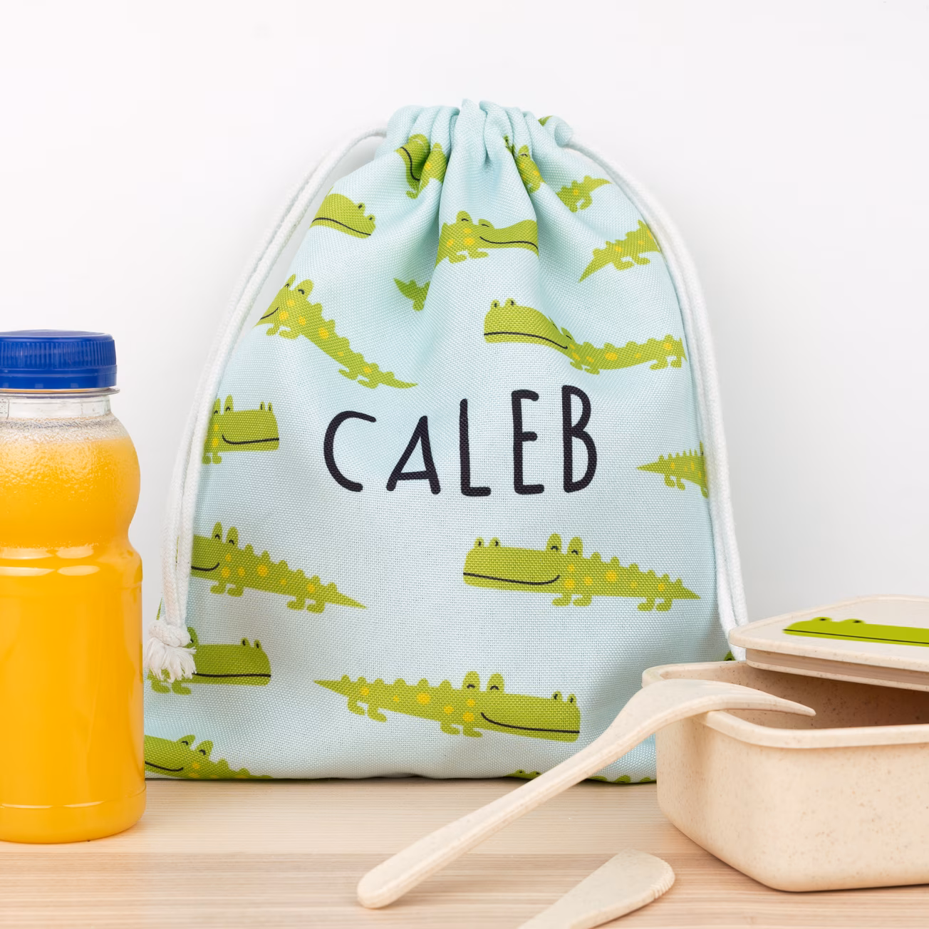 Esta bolsa de tela de merienda personalizada es ideal para que los peques puedan llevar su tentempié al cole. Tiene el tamaño perfecto y una capacidad de dos litros, aproximadamente. Además tiene el cierre con cuerda, para una mayor seguridad y que así no pierda nada durante su transporte.