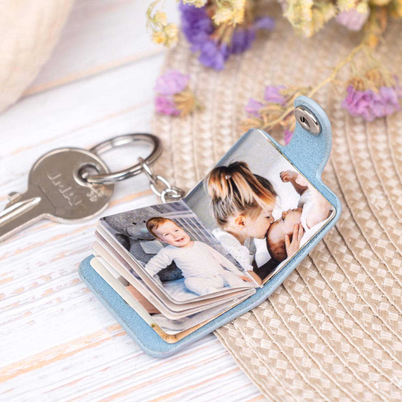 Hay personas a las que les encanta llevar siempre fotos de su familia, amigos o pareja. ¿Te incluyes entre ellas? Nosotros también, por eso te queremos recomendar nuestro mini álbum de fotos personalizado con llavero, porque cumple esa doble función que tú necesitas: organizar tus llaves y llevar fotos de quién tú quieres.
