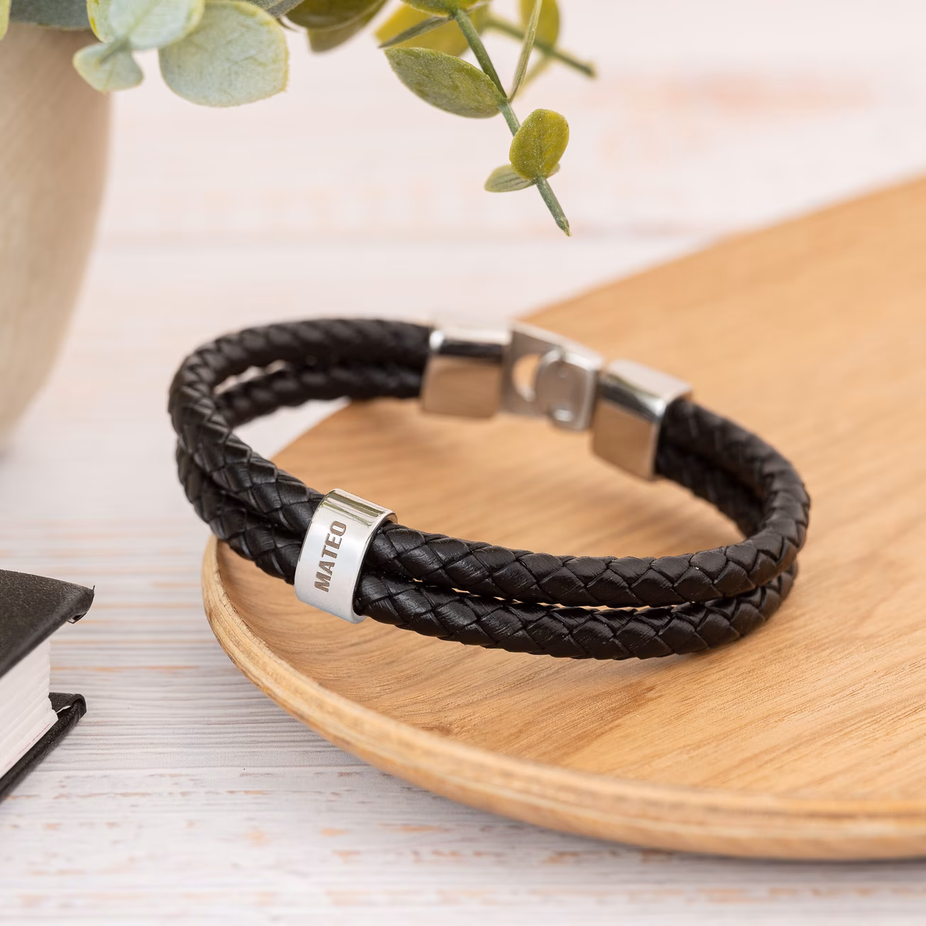 Una de las características más destacadas de nuestras pulseras de cuero para hombre es la opción de personalización. Puedes elegir entre diferentes opciones de diseño y color de pulsera, y además, grabar un mensaje especial, nombre, foto o imagen en la parte metálica del brazalete. Esta posibilidad de personalización permite que cada pulsera sea única, adaptándose a tus gustos y a los del destinatario de manera especial. Así, el destinatario del regalo podrá llevar un accesorio que no solo se adapte a su estilo, sino que también cuente una pequeña historia personal a través de su grabado.