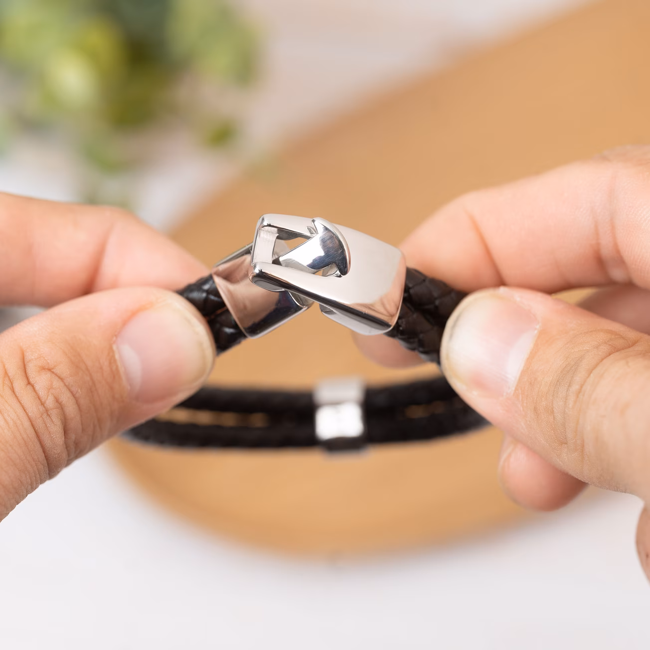 Evita el contacto con agua, y no mojes la pulsera ni la sumerjas en agua, ya que la humedad puede afectar tanto al cuero como al acabado del acero, acelerando su desgaste y pérdida de brillo. Limpia la pulsera con un paño suave y seco para eliminar el polvo o la suciedad. Siguiendo estos consejos, tu pulsera se mantendrá en óptimas condiciones durante mucho tiempo, conservando su belleza y funcionalidad.