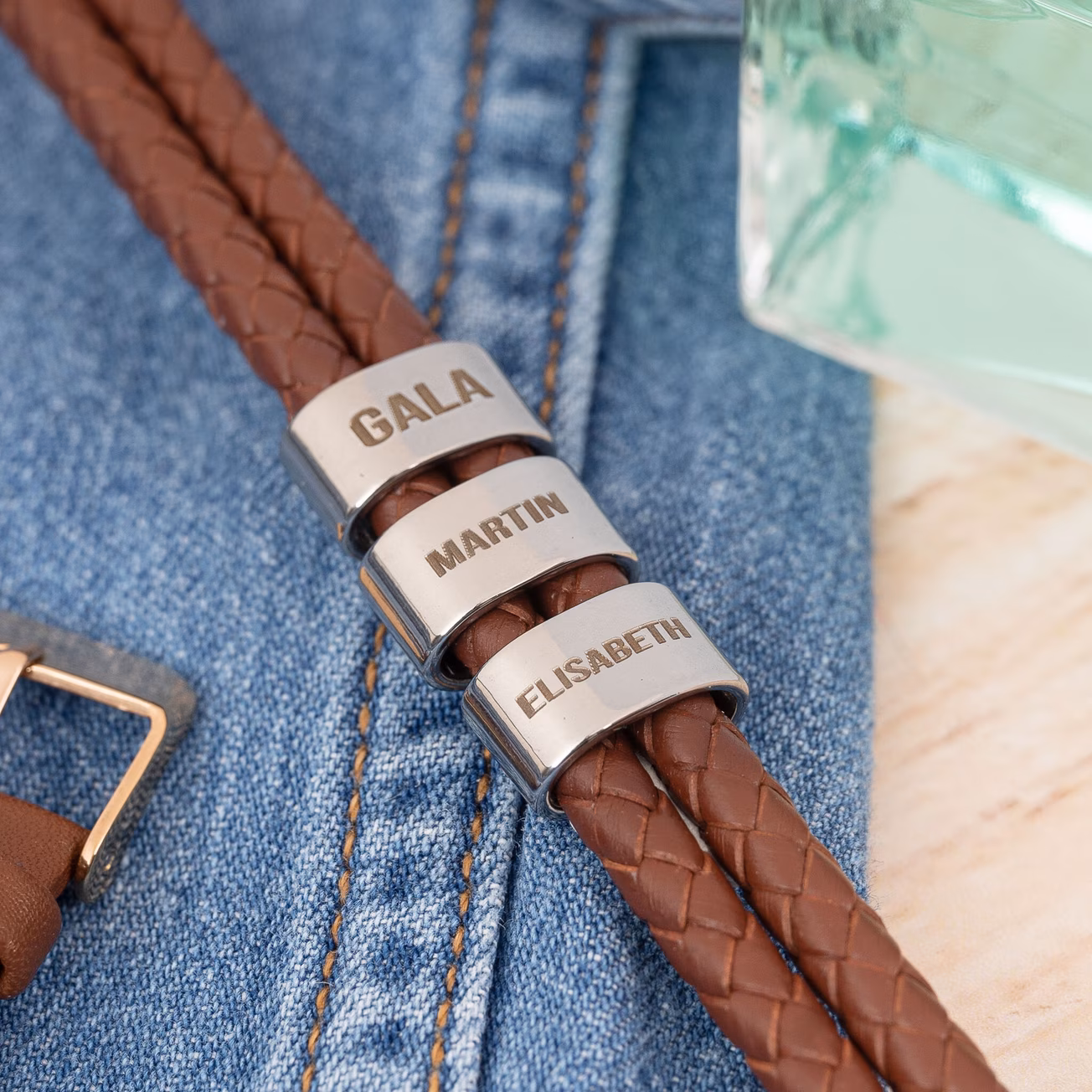 La personalización es el aspecto más destacado y diferenciador de nuestras pulseras de cuero. Ofrecemos la posibilidad de grabar cualquier diseño, foto o texto en la parte metálica de la pulsera, lo que la convierte en un regalo muy significativo. Este nivel de personalización no solo hace que el producto sea especial, sino que también añade un toque de exclusividad que será apreciado por cualquier hombre que reciba una de estas pulseras.