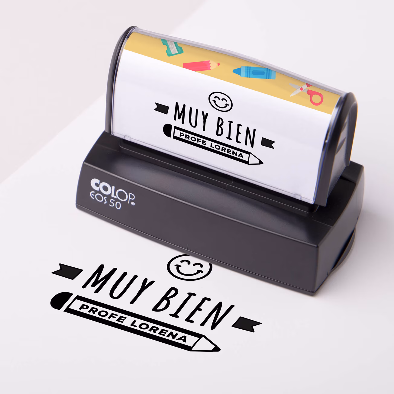 Se personalizan en dos partes de forma individual. Por un lado, el diseño o texto que quieras estampar; y por el otro, la carcasa. Normalmente se suele poner el mismo diseño de la goma para identificarlo más fácilmente en tu cajón.