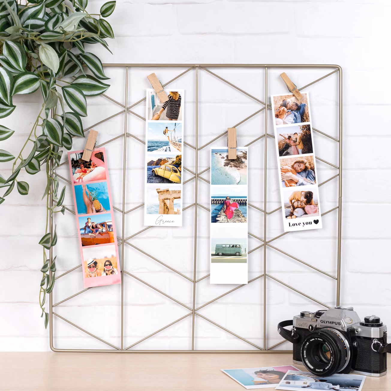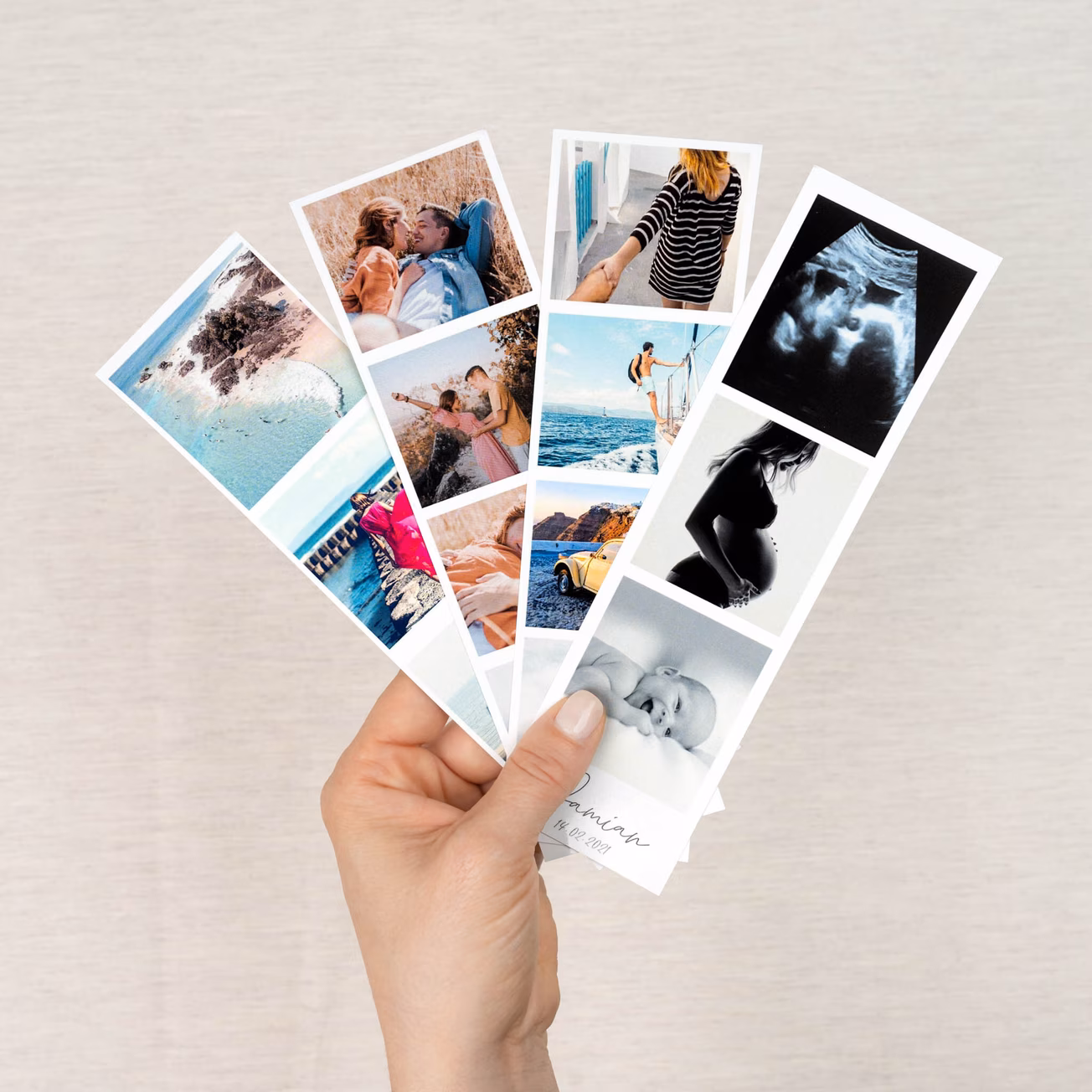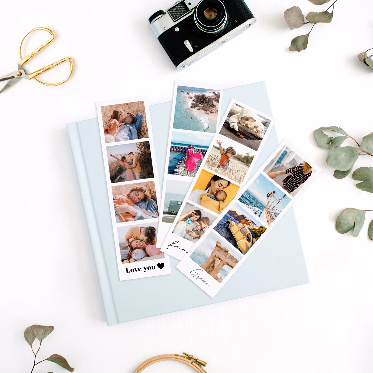 Puedes usar estas tiras de diferentes formas. Por ejemplo, como marcapáginas originales y marcadores de libros; así siempre irás viendo tus mejores fotos en esos momentos de lectura. O para colocar en la nevera, a modo de decoración, para sacarte una sonrisa cada vez que veas las fotografías. También puedes colocarlas en un corcho, en un marco fotográfico sobre la mesilla o librería. Incluso para eventos, regalando tiras fotográficas a los invitados de una boda, bautizo, comunión, o despedida de soltero.